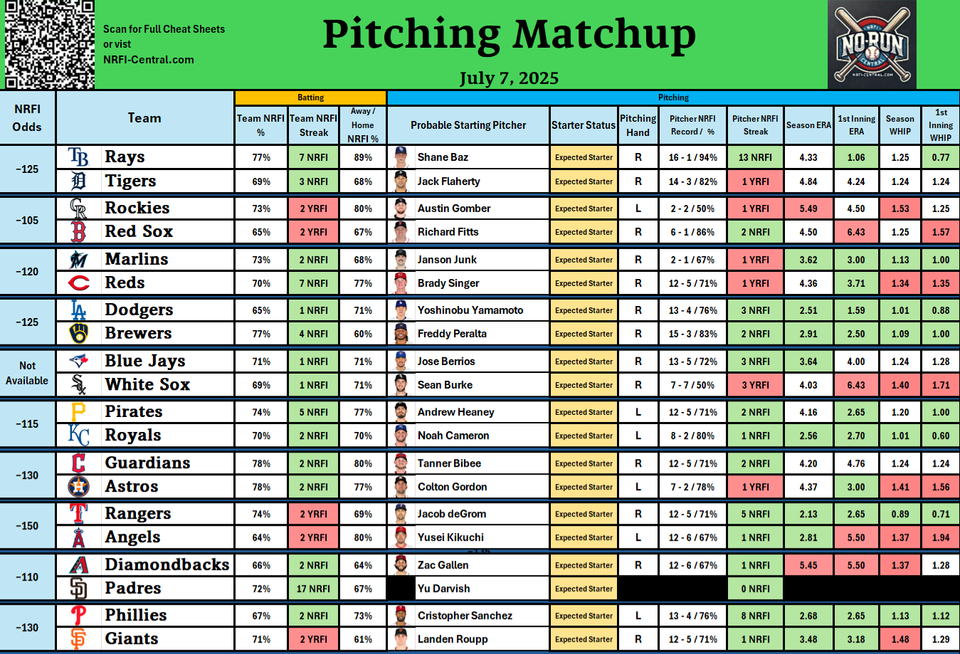 Thanks for using NRFI-Central.com! If you’ve found value in our data and picks, consider supporting the site — every bit helps keep the insights coming.