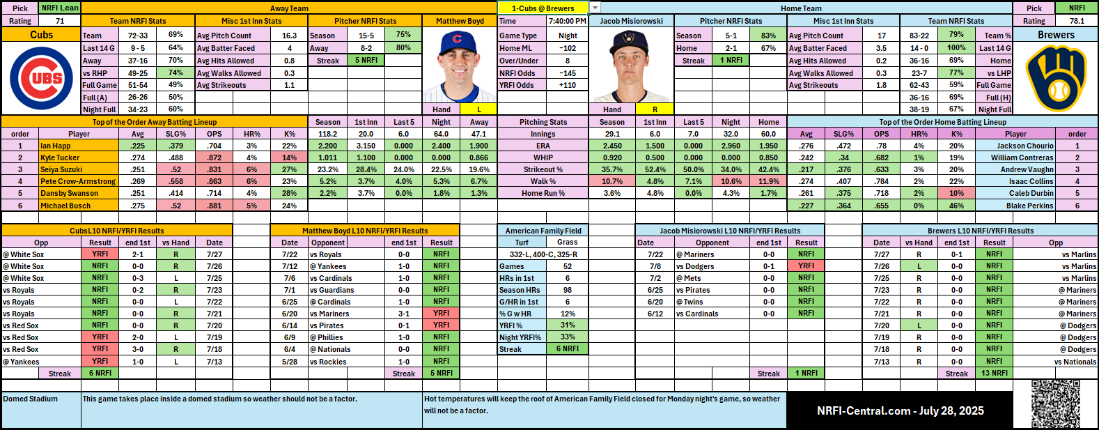 - Check out our free detailed NRFI Cheat Sheets