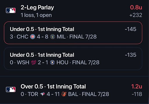 - Cubs/Brewers NRFI ❌
