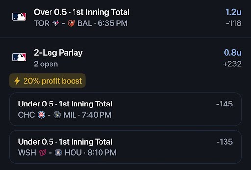 Taking all three straight and also parlaying the NRFIs.