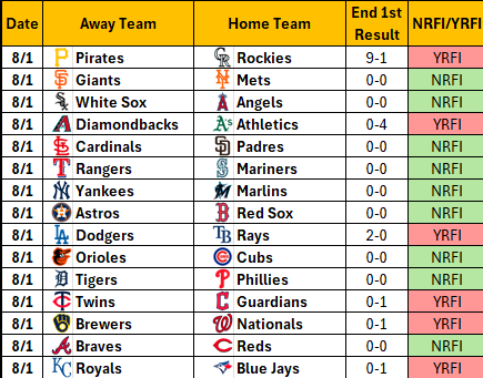 Thanks for using NRFI-Central.com! If you’ve found value in our data and picks, consider supporting the site — every bit helps keep the insights coming.