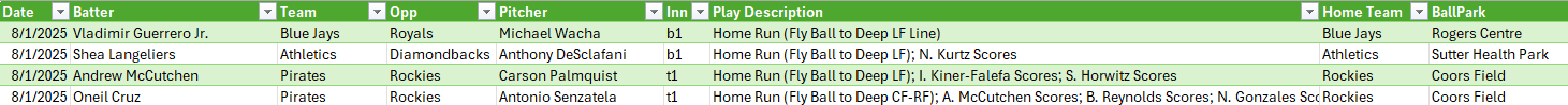 4 Home Runs were hit in the first Inning of all games yesterday.