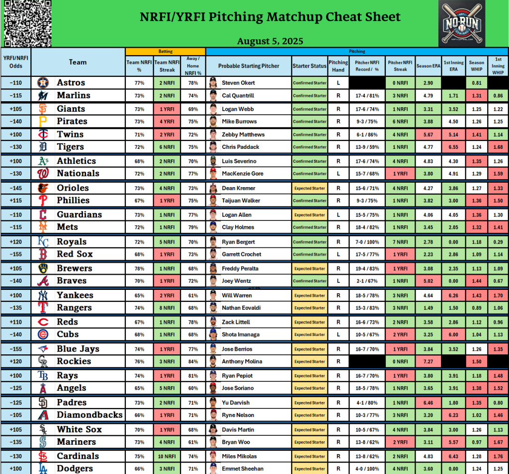 - Check out our free detailed NRFI Cheat Sheets
