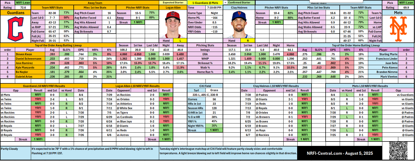 ⚾️ Guardians @ Mets NRFI