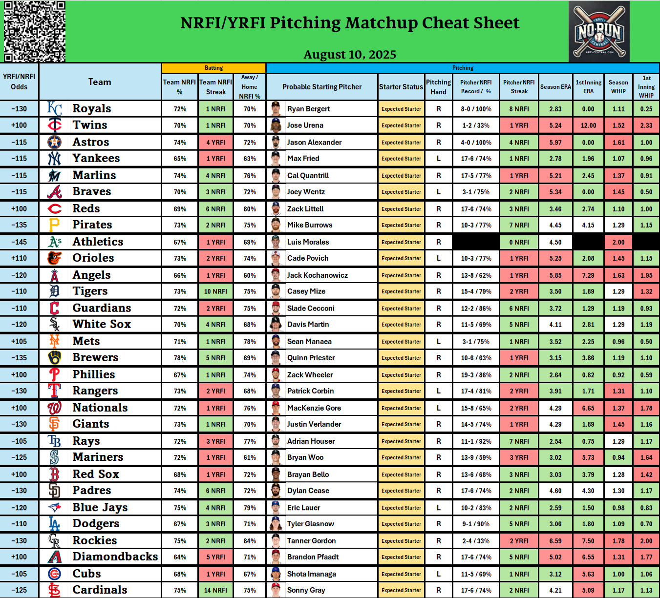 - Check out our free detailed NRFI Cheat Sheets