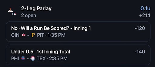 - Reds/Pirates NRFI✅