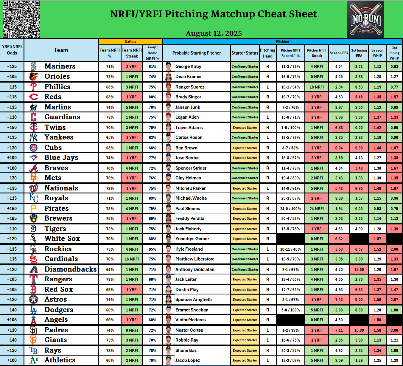 - Check out our free detailed NRFI Cheat Sheets