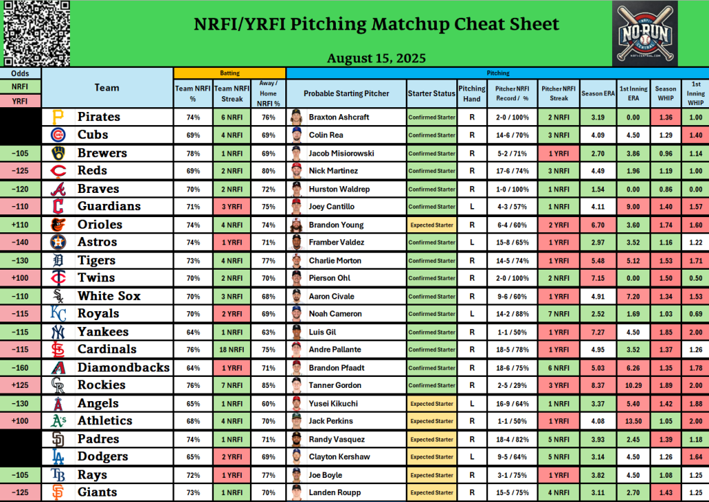 - Check out our free detailed NRFI Cheat Sheets