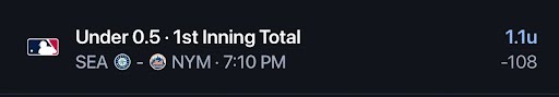 - Mariners/Mets NRFI ❌