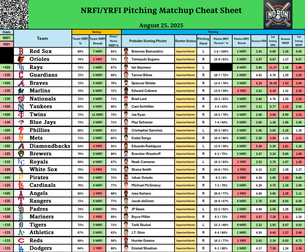 - Check out our free detailed NRFI Cheat Sheets