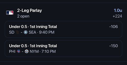- Phillies/Mets NRFI ❌