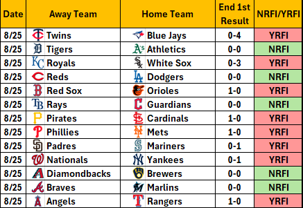 Thanks for using NRFI-Central.com! If you’ve found value in our data and picks, consider supporting the site — every bit helps keep the insights coming.