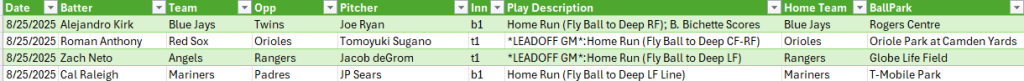 There were 4 homeruns hit in the 1st Inning of games yesterday.