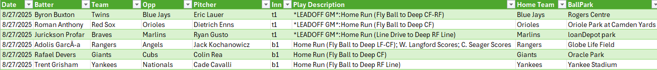 There were 6 homeruns hit in the 1st Inning of games yesterday.