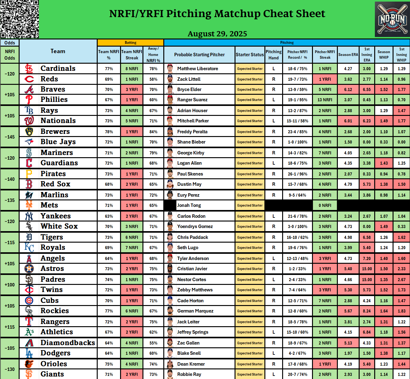 - Check out our free detailed NRFI Cheat Sheets