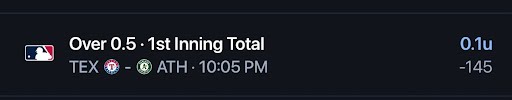 - Rangers/Athletics YRFI ❌