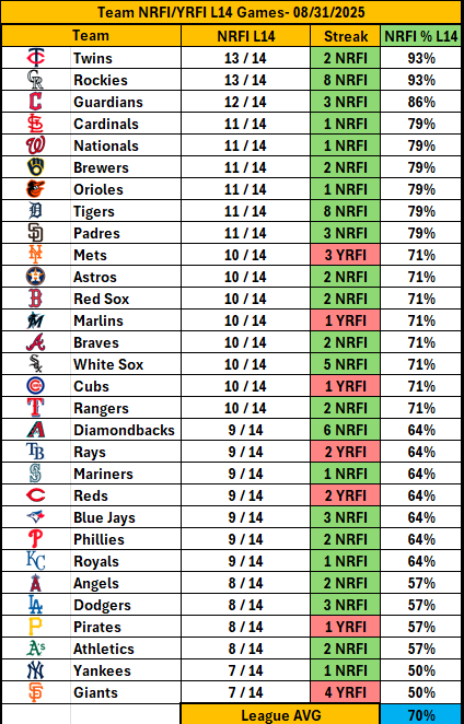 - Check out our free detailed NRFI Cheat Sheets