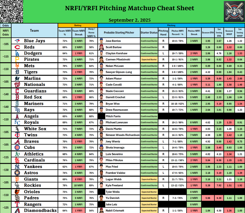 - Check out our free detailed NRFI Cheat Sheets