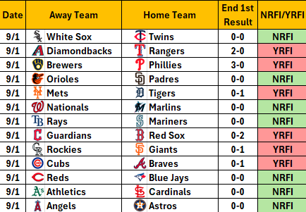Thanks for using NRFI-Central.com! If you’ve found value in our data and picks, consider supporting the site — every bit helps keep the insights coming.