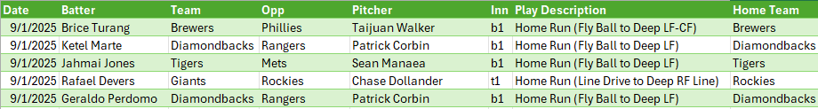 There were 5 homeruns hit in the 1st Inning of games yesterday.