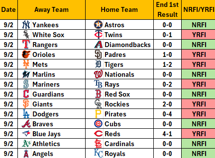 Thanks for using NRFI-Central.com! If you’ve found value in our data and picks, consider supporting the site — every bit helps keep the insights coming.