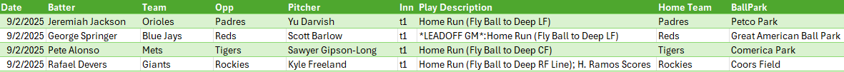 There were 4 homeruns hit in the 1st Inning of games yesterday.