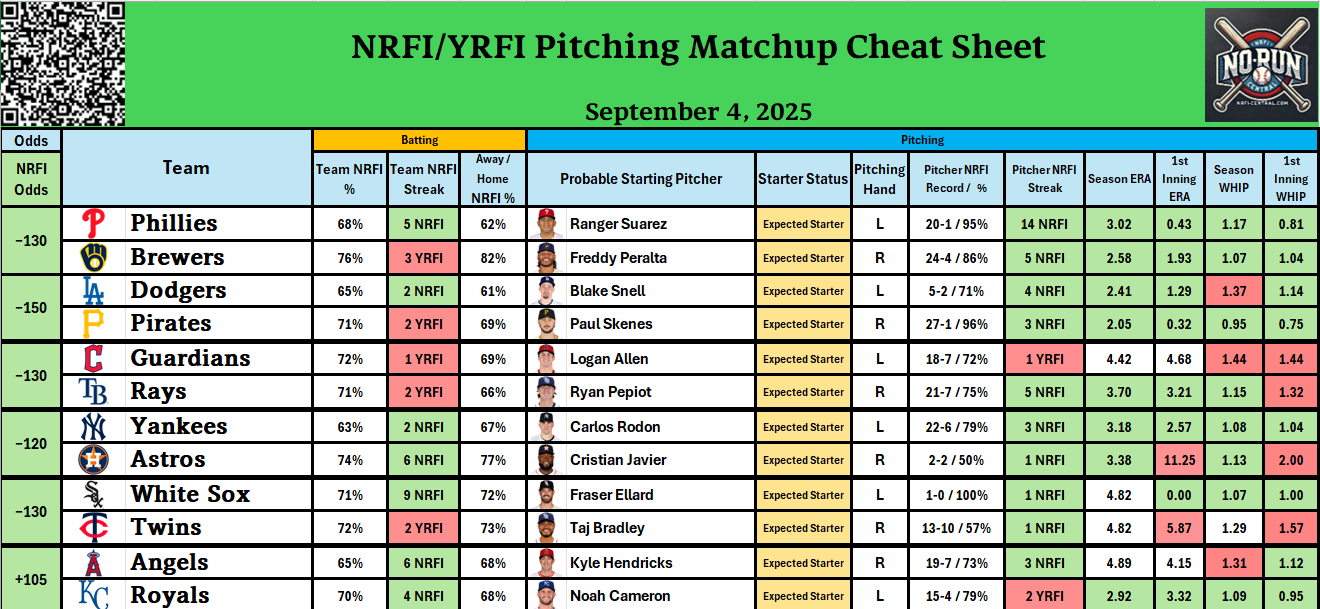 - Check out our free detailed NRFI Cheat Sheets