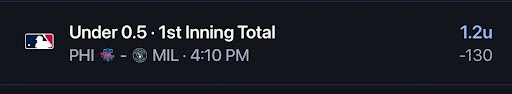- Phillies/Brewers NRFI✅