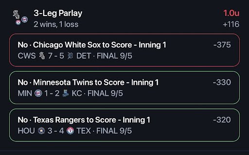 (Always confirm pitching lineup before placing bet as the model is calculating the starting pitcher into the final recommendation)