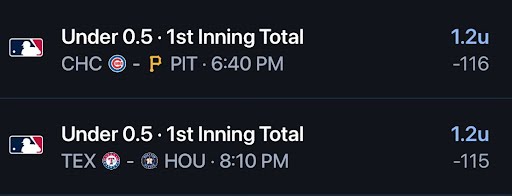 - Cubs/Pirates NRFI✅