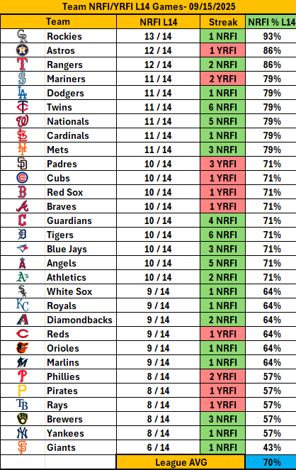 - Team NRFI-YRFI Split Records
