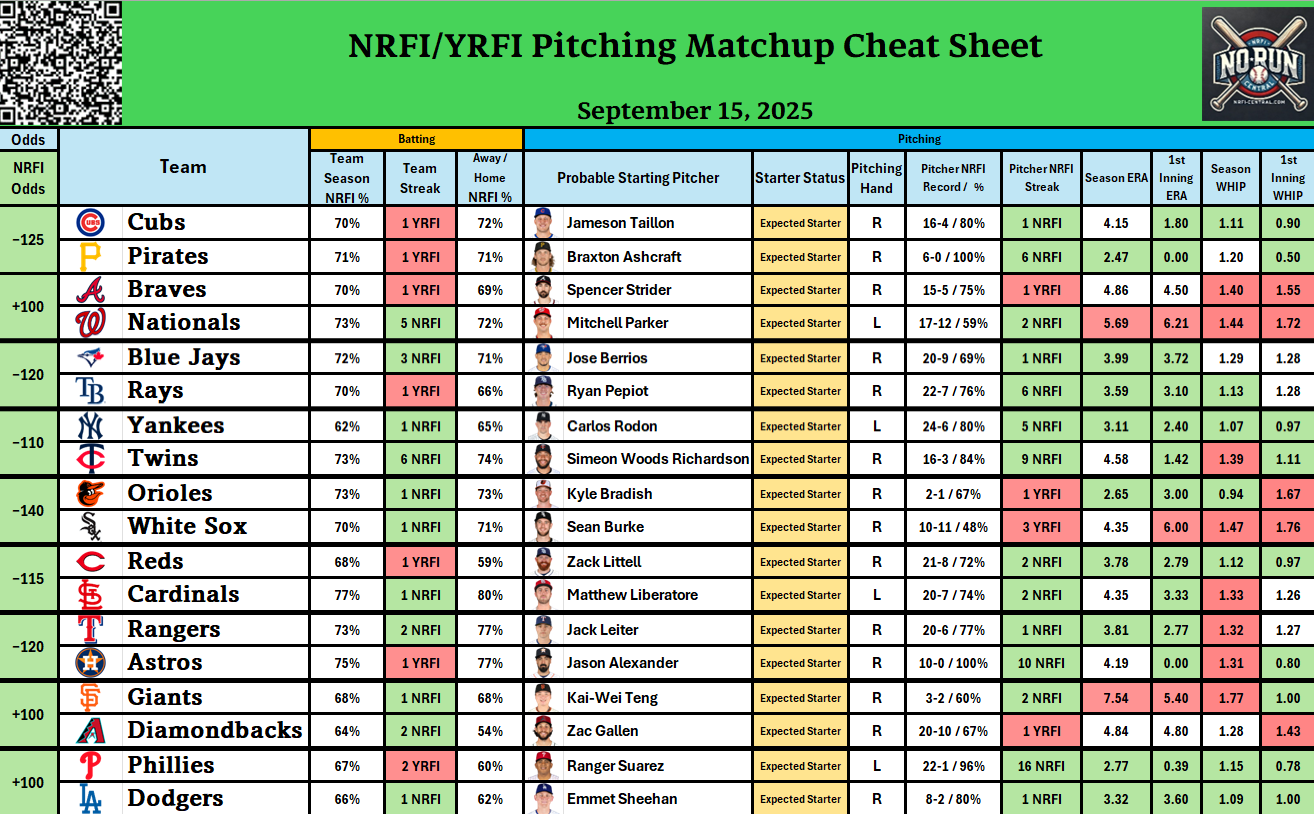 - Check out our free detailed NRFI Cheat Sheets