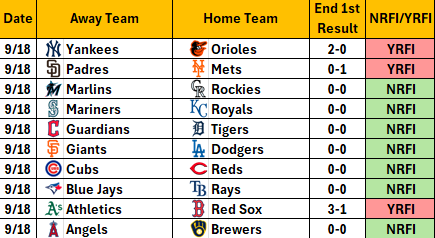 Yesterday there were 7 NRFIs and 3 YRFIs.