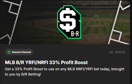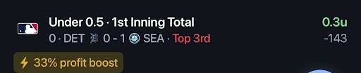 Draft Kings as NRFI\YRFI pick boost today which was used to get odds to -143: