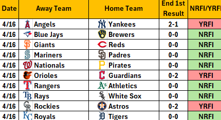 Yesterday’s slate of games produced 7 NRFI and 3 YRFIs.