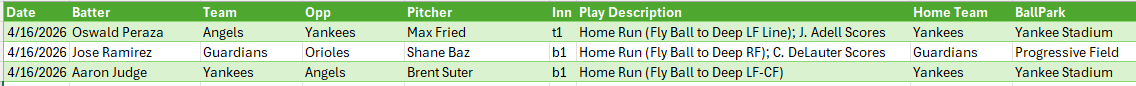 There were a total of 3 home runs that were hit in the 1st Inning of games yesterday.
