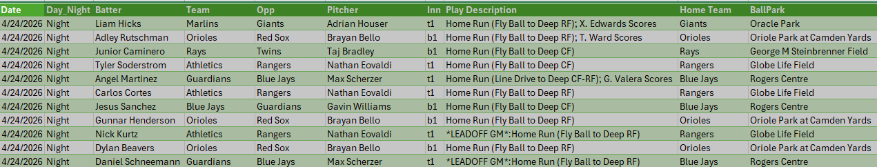 There were a total of 11 home runs that were hit in the 1st Inning of games yesterday.