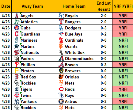 Yesterday’s slate of games produced 9 NRFIs and 7 YRFIs.